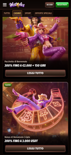 | Westace | PWA ad alta velocità | 300% fino a 2000 EUR + 150 Giri | Istantaneo |