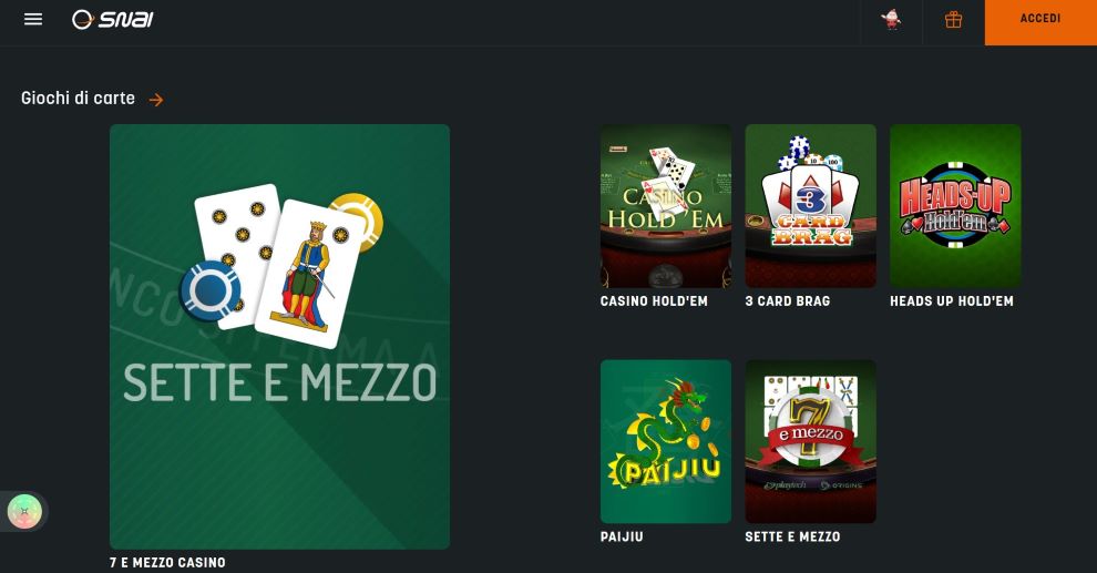 Le slot machine rappresentano il cuore dell’offerta, con 2.179 titoli disponibili, dai classici a tema frutta alle video slot con funzionalità avanzate, fino ai titoli a jackpot progressivo (ben 156 in totale). Gli utenti possono scegliere tra centinaia di temi e meccaniche di gioco, comprese le popolari slot Megaways, con possibilità anche di snai gioco gratis tramite promozioni e giri bonus.
