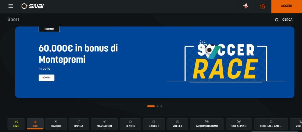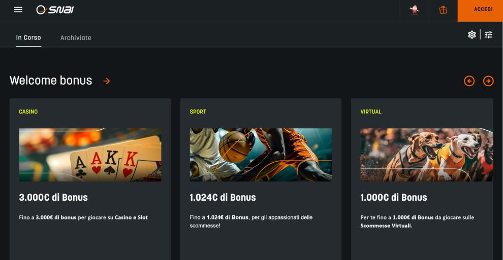 | Bonus Snai giornaliero | Premi quotidiani variabili | N/D | Diversi per tipo | Variabili | Ogni giorno |